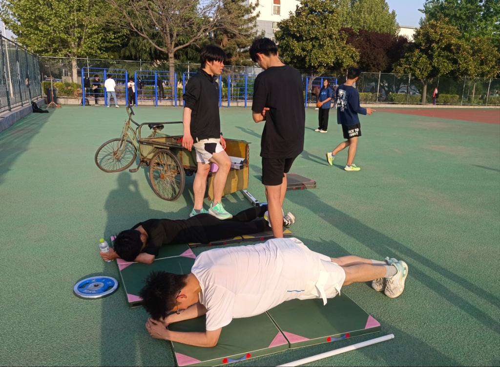 田径队凝聚力,4月8日清晨,辅导员蒋君前往训练场地观摩田径队训练课。