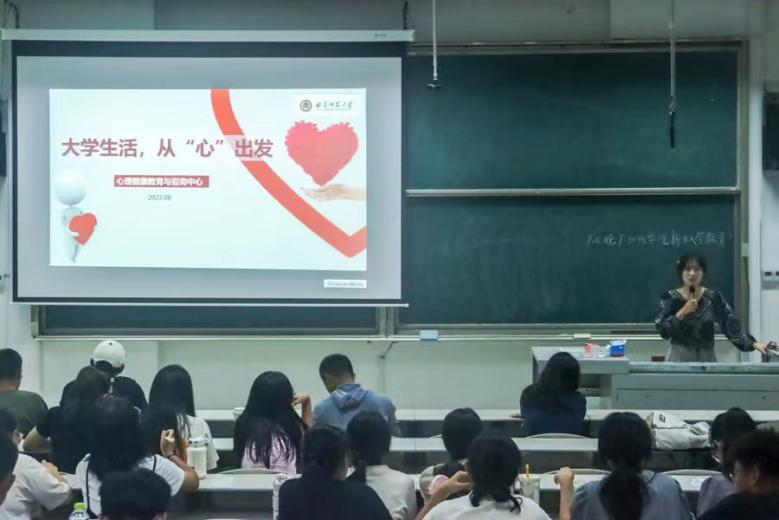 于9月18日晚在综合楼701教室举办心理健康教育大会。此次大会由学院心理辅导员曾川主讲,2023级全体同学参加。