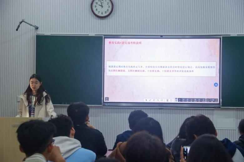 团委书记王亚平、组织部部长周媛主讲,学院2024级全体团干部参加。