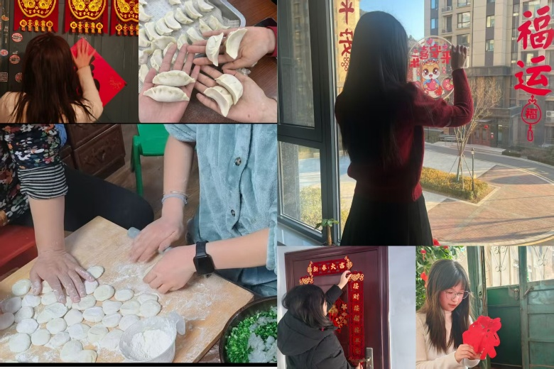 活动以“聚福迎新春”为主题,共设置了“迭趣福”“健康福”“智慧福”“劳动福”和“爱国福”五大板块,同学们通过完成相应的打卡任务,集齐五福。在“迭趣福”板块中,同学们通过拍摄记录包饺子、贴春联等有年味的活动,制作成影集或视频;在“健康福”板块中,同学们积极参与跳绳、跑步、健身操等体育锻炼;在“智慧福”板块中,同学们通过学习打卡、单词记忆等方式,不断提升学习能力;在“劳动福”板块中,同学们记录帮做年夜饭、参与家庭大扫除等家务劳动;在“爱国福”板块中,同学们通过观看爱国电影、抄写爱国诗句等方式,表达对祖国的热爱之情。活动最终评选出一批优秀作品,并通过学院公众号进行展示。