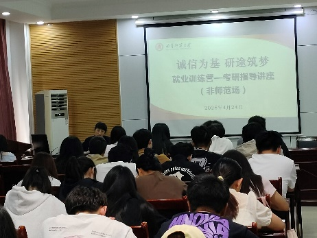 于4月24日召开2027届考研指导座谈会—2023级本科师范生专场,全国“考研联盟”特邀分析师、新东方在线首席考研咨询规划师郭涛主讲,学院2023级辅导员黄秉帅、孙兰馨和2023级本科师范生参加。