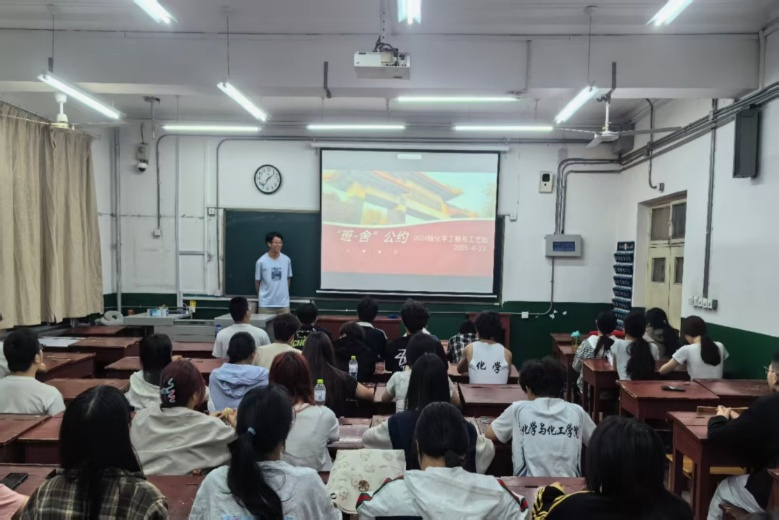 2024级化学工程与工艺班于4月23日召开“班-舍”公约主题班会。本次班会由班长李子瑞和团支书艾柯莱·阿卜杜许库尔策划主持,班级全体同学参加。