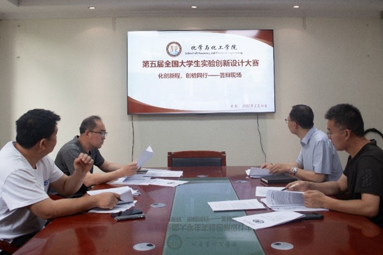 全国大学生实验创新设计大赛答辩于5月14日下午15:00在化学楼218会议室进行,学院副院长刘鹏和教师岳明波、李言信、郭丽华担任本次答辩的评委老师。