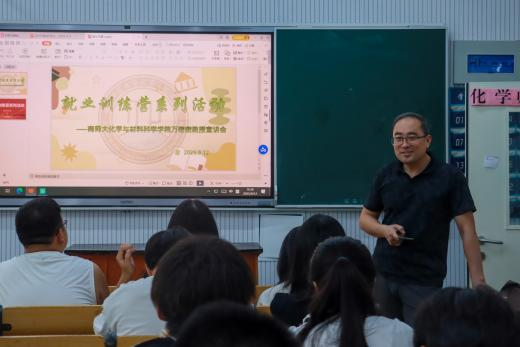 (通讯员:傅心语 摄影:李梦涵)为使2023级学生能够更加明确自己的学术目标和职业规划,在化学的道路上迈出更加坚定的步伐,9月12日,学院邀请到南京师范大学化学与材料科学学院教授、博士生导师万密密教授,进行了一场别开生面的就业训练营系列讲座。本次讲座在化学楼102教室举行,由岳明波老师主持,吸引了众多有志于进一步深造的学生前来聆听。