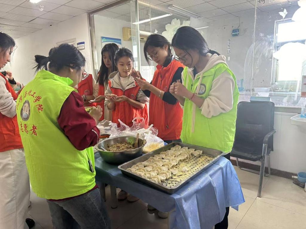 活动期间,志愿者们为老人们送去了慰问礼物,在各小组负责人的组织下,志愿者们有序进入老人们的房间主动地开展志愿者服务。志愿者们分工明确,有陪着老人们聊天的,有为老人打扫房间卫生的,有为老人洗脚捶背的。中午,志愿者们还为老人们包起了饺子。老人们脸上洋溢着幸福的笑容,并为志愿者们竖起了大拇指。