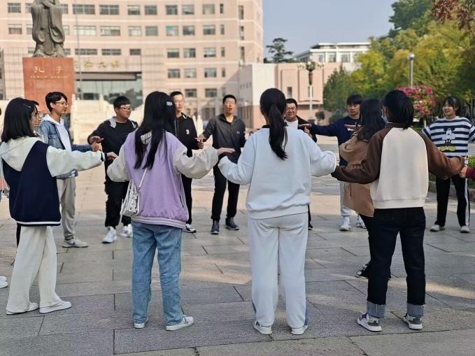 在孔子文化广场举办了团体心理辅导活动。本次活动由心理健康服务部承办、由2020级、2021级心理委员担任团辅领导者、2022级全体新生参与活动。