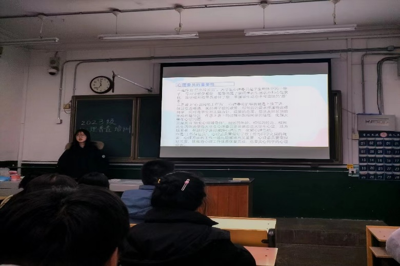 心理健康服务部于化学楼101教室开展了心理委员及心理信息员培训大会暨心理普查讲座,本次讲座由心理健康服务部主讲。